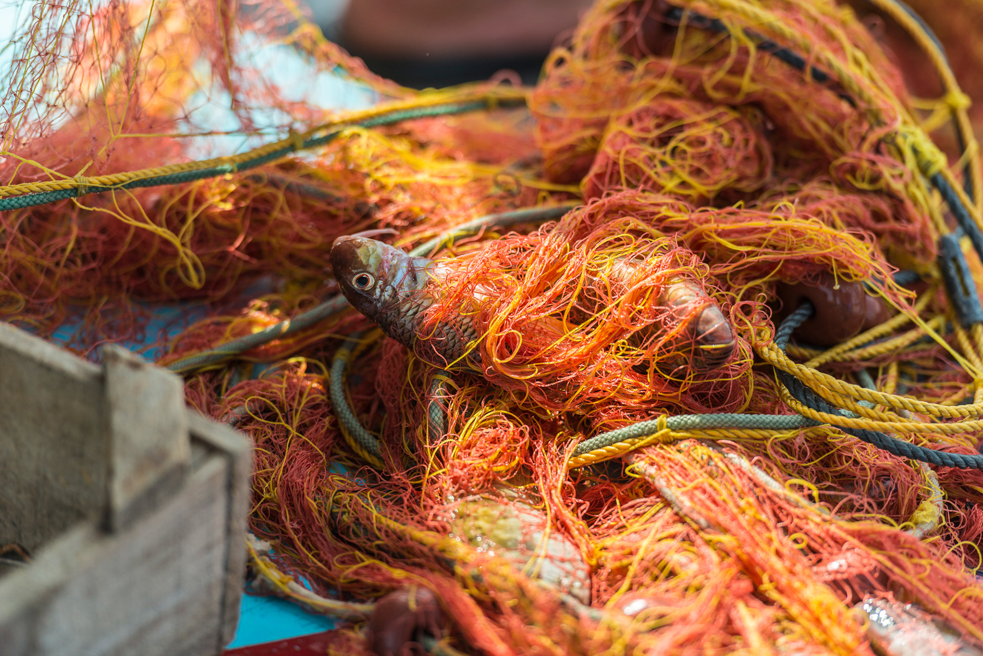 Captain Anthi Arvaniti, daughter of four generations of Santorini fishermen takes us out for the mornings catch. She has the only authorised fishing boat trip on the island from the harbour at Vlychada